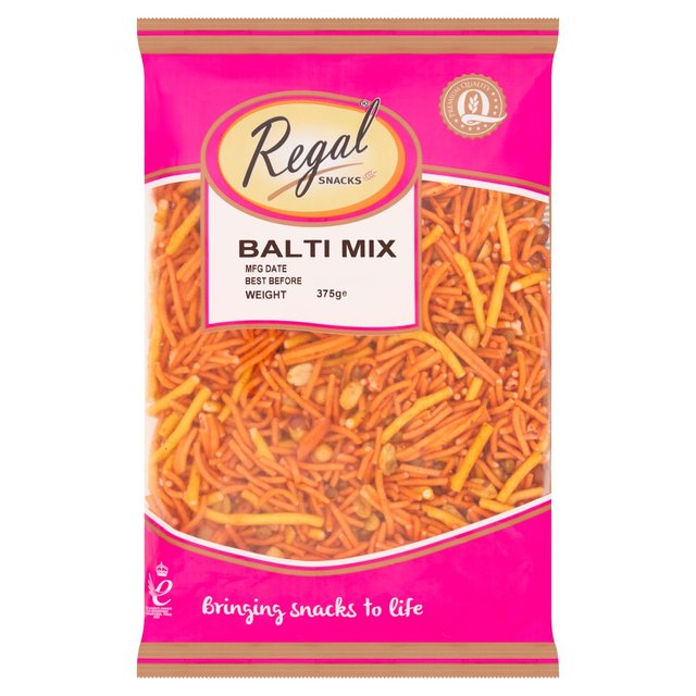 Regal Balti Mix is ​​a delicious and varied selection of snacks, perfect for lovers of South Asian cuisine. Packed in a 375g pack, this mix provides a rich and complex palette of flavours and textures, creating a unique culinary experience.