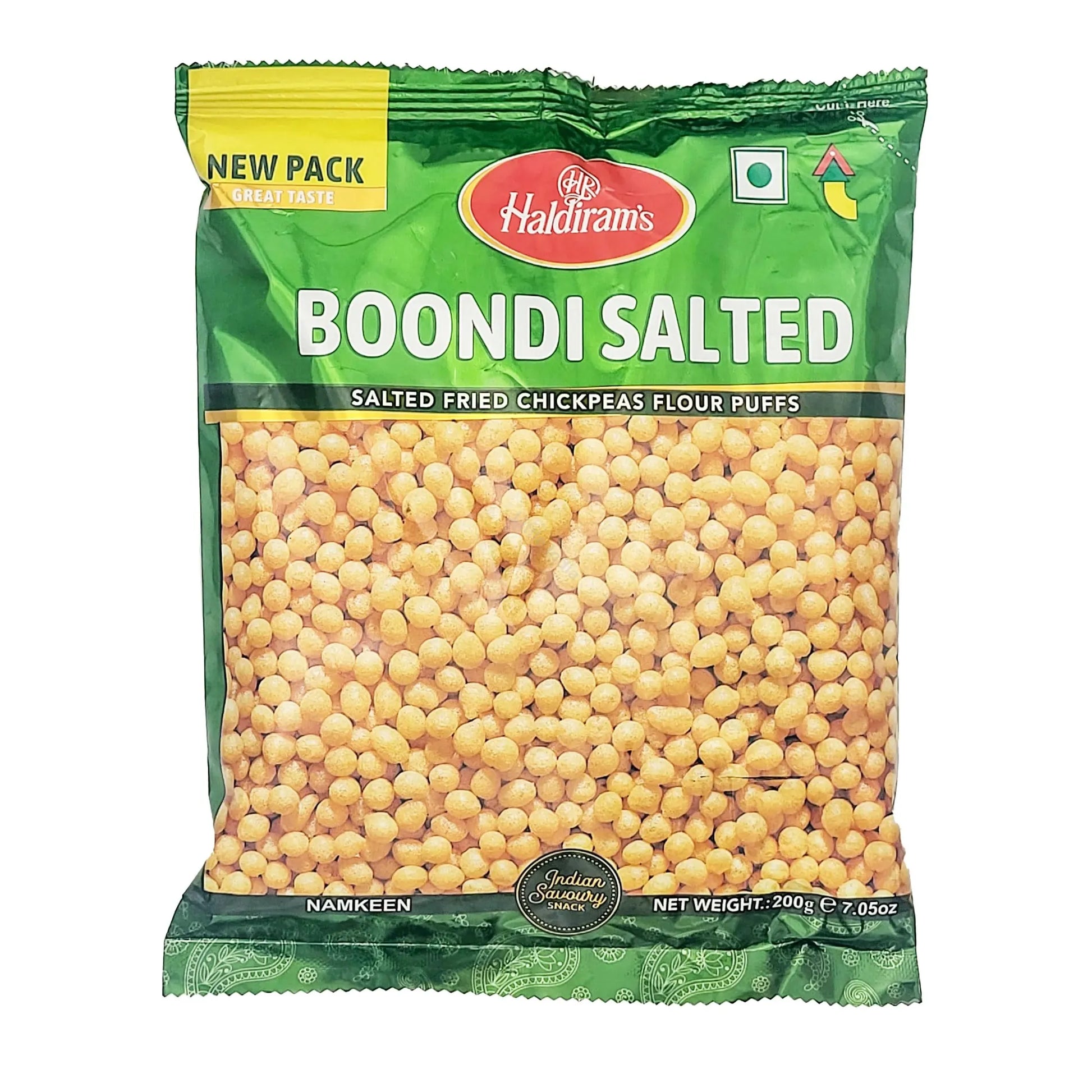 Haldiram Boondi is a classic Indian snack that is made from chickpea flour. The name boondi comes from the way it is prepared, which involves frying small balls made of dough. Haldiram Boondi Plain/Salted is a version of this snack that has been lightly seasoned with salt, giving it a distinct flavor. and tasty character.