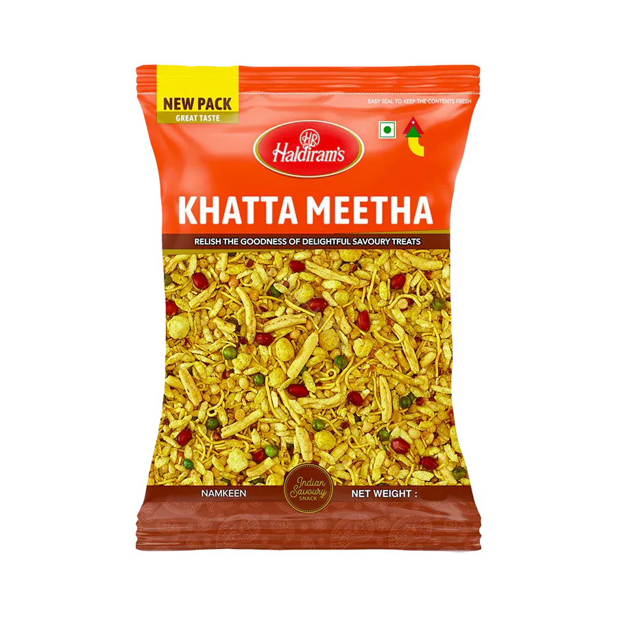 Haldiram Khatta Meetha Mix is ​​a unique and extremely popular Indian snack that delights with its unique harmony of flavors. This unique mix combines salty and sweet elements, creating a wonderful composition of textures and aromas. It consists of various components, such as crunchy sev, aromatic peanuts and delicate, slightly sweet macaroons. The whole is seasoned with a delicate set of spices, giving the snack a unique, intense flavor.
