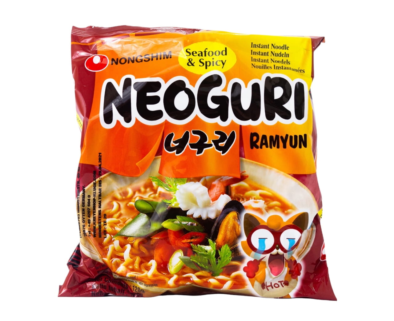 Nongshim Neoguri Ramyun is a popular Korean dish that combines seafood and spicy flavors. This package contains 120 grams of dried ramen noodles that only require a few minutes of preparation. The noodles are enriched with seafood extracts, creating an intense and rich flavor. Additionally, the spice blend gives the dish a pleasant spiciness, perfect for lovers of bold flavors. The product is completely vegan, making it a great choice for people with different diets. With its simple and quick preparation, Nongshim Neoguri Ramyun is a great option for a quick meal or snack at work or at home. Each serving provides a delicious and satisfying feast that is sure to please both Korean food lovers and seafood lovers.