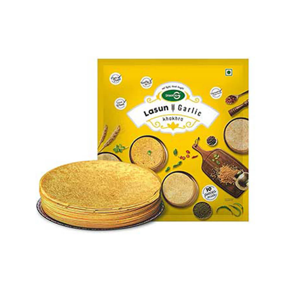 Garlic Shanta G Khakhra is a delicious and healthy snack from South Asia that will appeal to lovers of unique flavors. This product is manufactured in a hygienic environment and has many advantages. First of all, it is based on wheat flour and its ingredients do not contain any preservatives or cholesterol. Khakhra is also baked, which gives it a crispy texture and a deep, distinctive aroma.