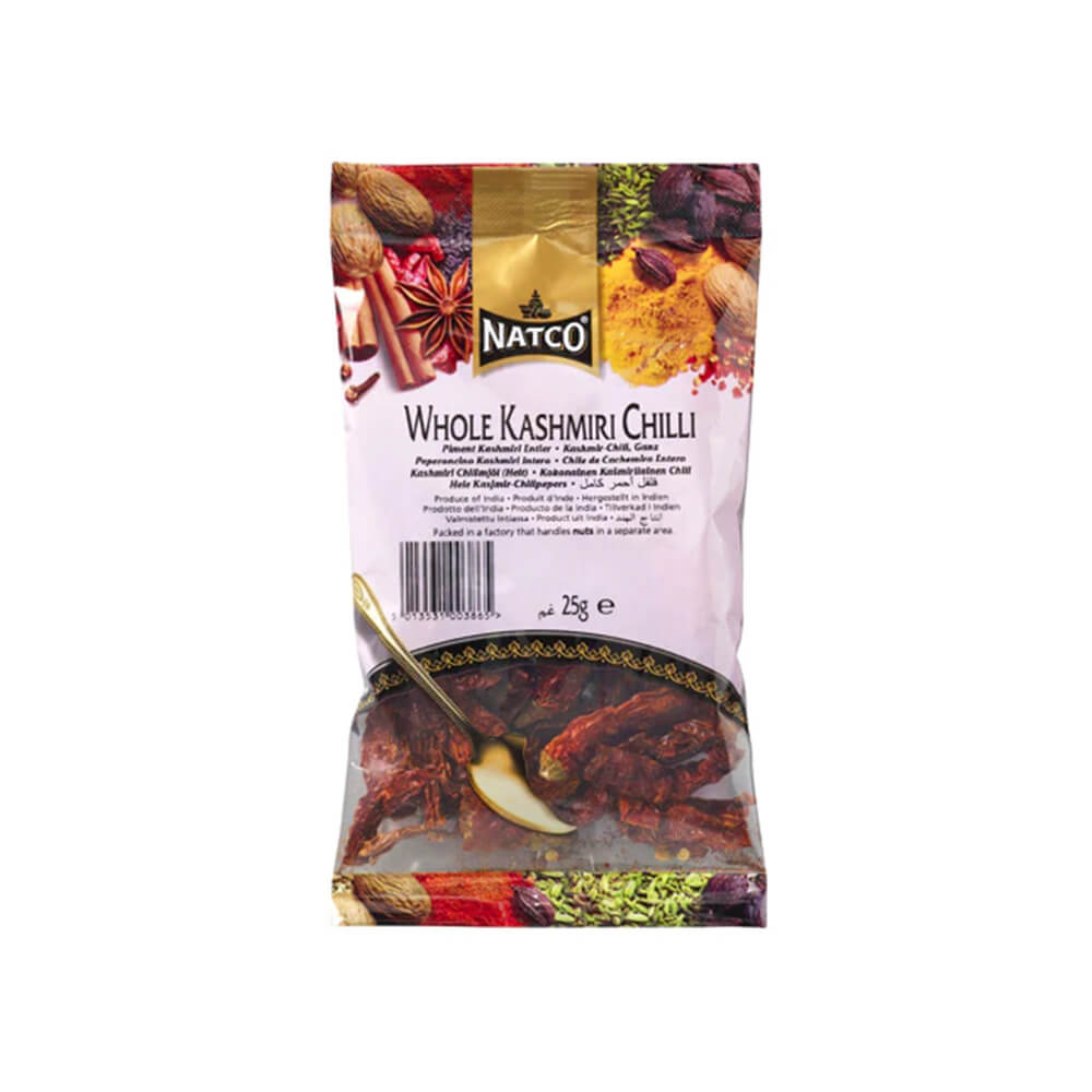 Natco Kashmiri Chili is a whole, aromatic chili from the Kashmir region of India. This type of chili has a slightly higher level of heat compared to traditional red chilies, giving dishes a more interesting, slightly hot flavor. Kashmiri chilies also add a delicate, reddish hue to dishes such as curries and sauces. They are ideal as an addition to a variety of Asian dishes, giving them a depth of flavor and an aromatic character.