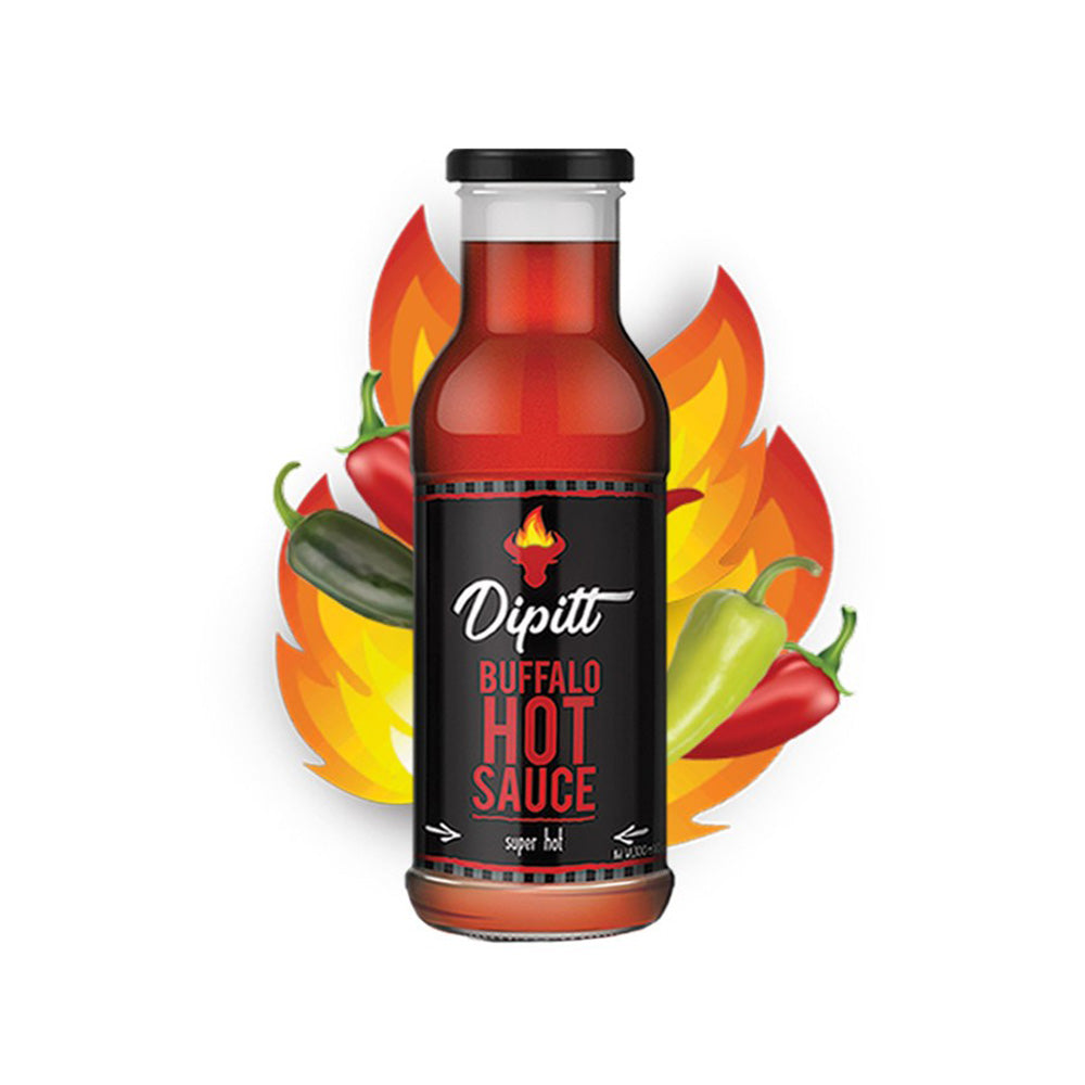 Dipitt Buffalo Hot Sauce is a unique sauce created using carefully selected, aged peppers that give it an authentic buffalo flavor. The sauce is slow cooked in small batches to maintain its artisan quality. It contains no artificial additives such as colors or flavors.